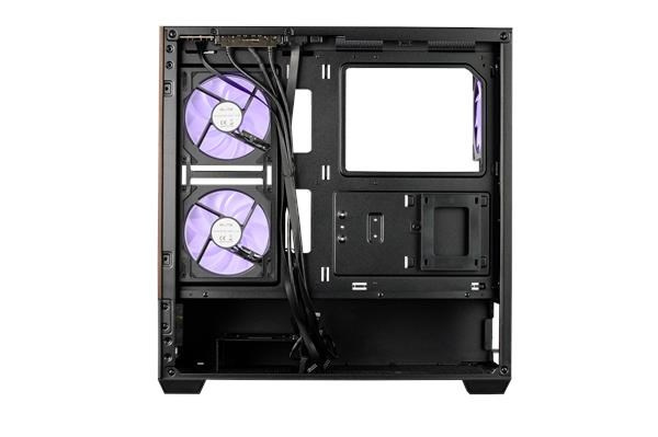 Provedení skříně:Midi Tower; Barva skříně:Černá; Počet pozic 3.5" (HDD):1; Počet pozic 2.5" (SSD):1; Bočnice:Prosklená; Podsvícení:bez podsvícení; Vybavení PC skříně:Přední Audio panel, Přední USB panel, Průhledná bočnice.Více