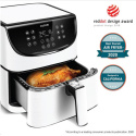 Horký vzduch rotuje kolem jídla ze všech stran a tím dosahuje kvalitního a rovnoměrného propečení a uvaření pokrmů. Díky této technologii se fritéza předehřeje během pouhých 5 minut.