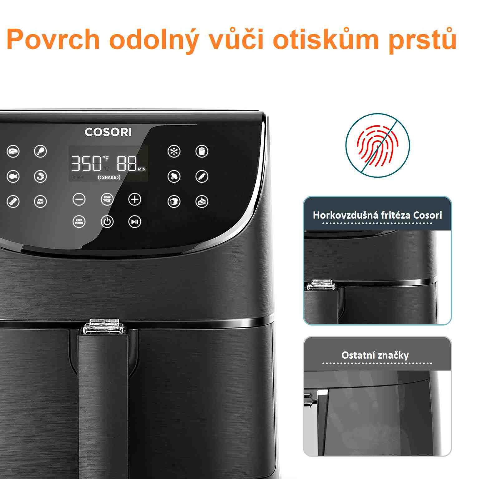 Design horkovzdušné fritézy COSORI CP158-AF byl navržen v Kalifornii. Díky své praktičnosti, funkcím, ovládání i přehlednému dotykovému nakloněnému LED displeji se snadno přístupnými tlačítky získal také prestižní ocenění Red Dot Award a Design Award za nejlepší design. Povrchová úprava je navíc odolná vůči otiskům prstů, takže fritéza bude ve vaší kuchyni vypadat pořád skvěle. Podle prodejních statistik je značka COSORI také nejprodávanější značkou horkovzdušných fritéz v USA.