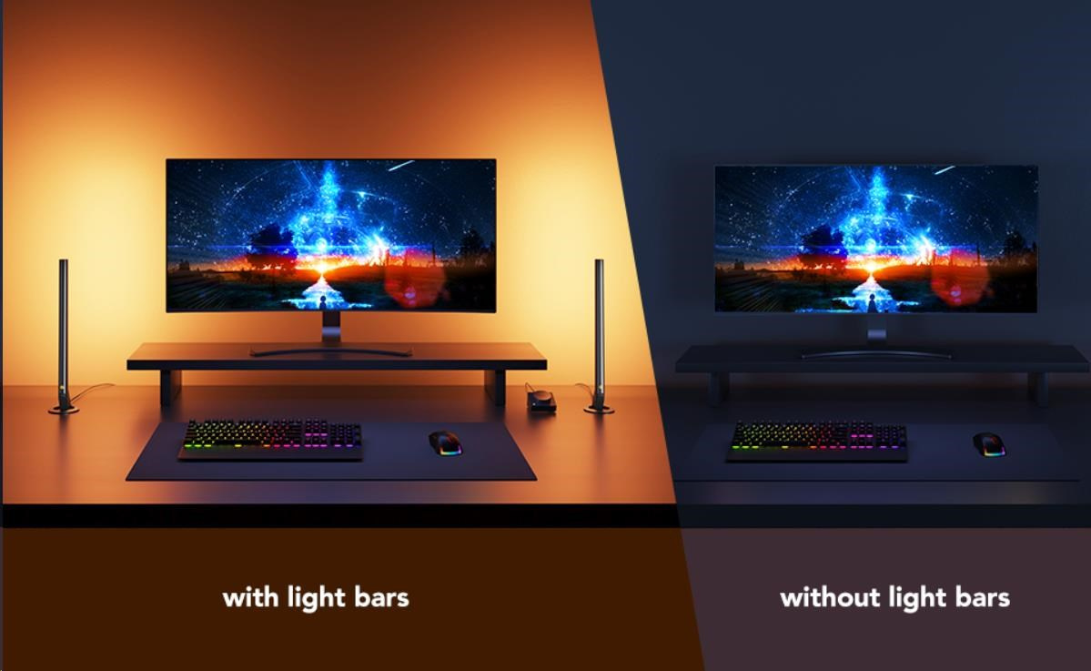 Vylepšete své herní, filmové a hudební zážitky s chytrými světelnými panely Govee Smart Gaming. 16 milionů barev s 62 režimy a 8 režimů pro synchronizaci s hudbou povznesou zážitek ze sledování televize nebo hraní her na novou úroveň. Ovládají se hlasem přes Siri, Amazon Alexa nebo Google Assistant, přes aplikaci nebo přes Smart Dual ovladač. Nebudete proto ani muset vstávat z gauče. Barevné podsvícení opticky zvětšuje obraz, šetří oči a má živostnost až 50.000 hodin.