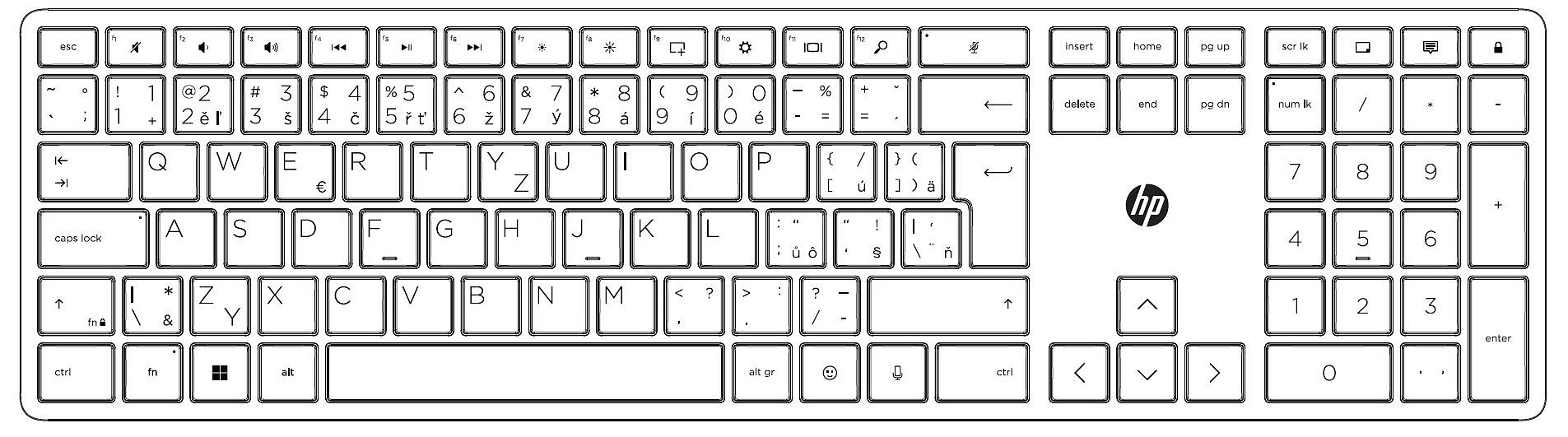 Třízónová plnohodnotná kabelová klávesnice HP 125 disponuje patkami nastavitelnými v rozmezí 0–6 stupňů, které zaručí pohodlné psaní. S kontrolkami LED pro Caps Lock, Num Lock a Function Lock snadno rozpoznáte, zda jsou tyto funkce aktivní.