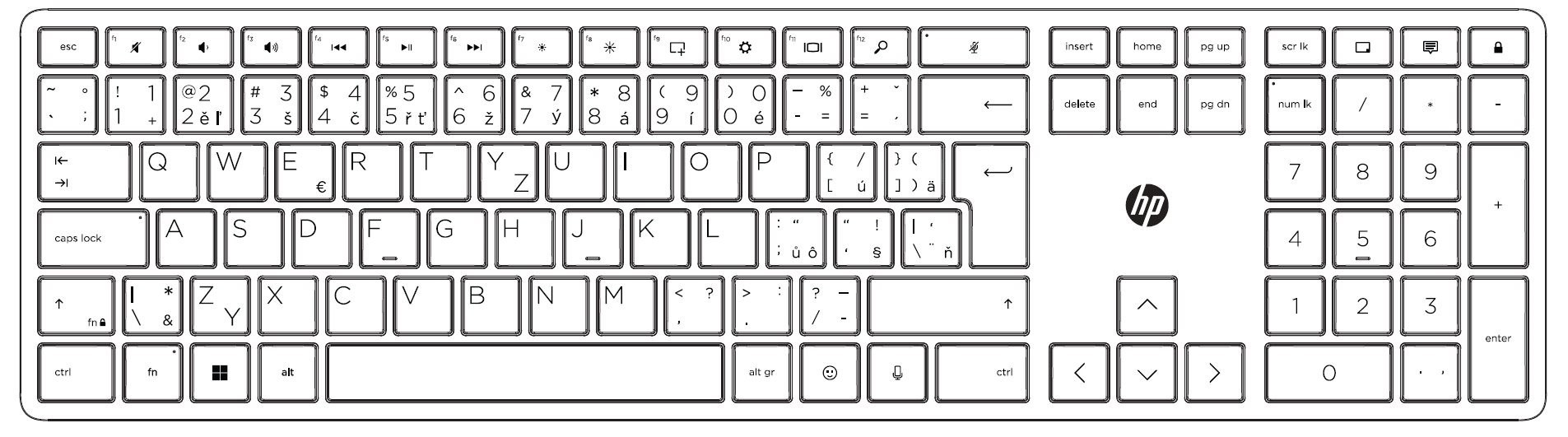 | Poznámka pod čarou [01] | [1] Vybrané klávesy lze programovat pouze na klávesnici, ne na numerickém bloku. Vyžaduje software HP Accessory Center (HPAC). Software HPAC je k dispozici volně ke stažení v obchodě Microsoft Store. |