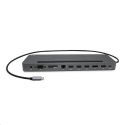 Ergonomická kovová dokovací stanice USB-C, která podporuje až 3 externí monitory. Stanice je kompatibilní s jakýmkoliv notebookem vybaveným portem USB-C nebo Thunderbolt 3 (60 cm integrovaný kabel je dostatečně dlouhý pro připojení všech notebooků s obrazovkou do velikosti 15“). Tento dok nabízí 4x USB port, spolehlivé a rychlé připojení do podnikové sítě díky integrovanému LAN portu a napájení až 85 W. Díky svému provedení je možné ji použít zároveň jako podstavec pro notebook.