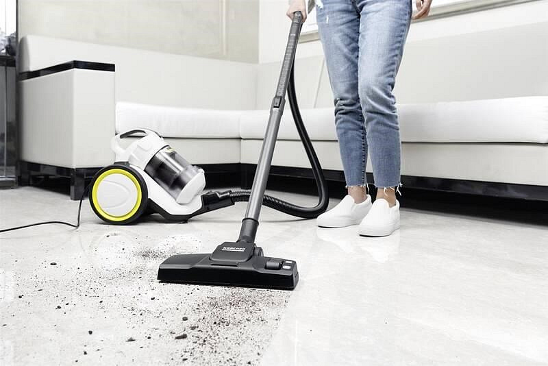 Skutečně kompaktní bezsáčkový vysavač, to je Kärcher VC 3. Disponuje výkonem 700 W a multicyklónovou technologií. Průhledná nádoba na prach má objem 0,9 litrů a dovoluje rychlou vizuální kontrolu. Vysavač je ideální pro menší byty a domácnosti. Použití je vhodné pro všechny typy podlahy včetně koberců. Štěrbinová hubice pomůže s úklidem odlehlých koutů a těžko dostupných míst. Hlavice s měkkým kartáčem je vhodná pro jemné povrchy a čalounění.