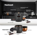 Elektrický tlakový hrnec už není strašákem, po skončení programu jednoduše upustíte bezpečně tlak pomocí One Touch ventilu. Zpracování přístroje v originálním prémiovém High end designu zaručuje nejen tu nejvyšší kvalitu použitých materiálů, ale také velmi snadnou údržbu díky nepřilnavému povrchu vnitřního hrnce o objemu 5 l. Začátky s novým spotřebičem usnadní inspirativní kuchařka s osmi zdravými recepty, která je součástí balení.