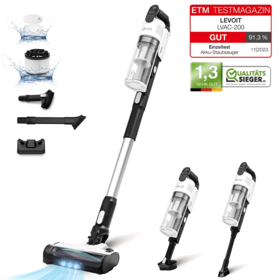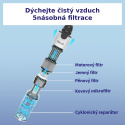Tyčový vysavač Levoit je navržený, aby maximálně usnadnil úklid vašeho domova, ať už ho sdílíte se čtyřnohým, nebo dvounohým miláčkem. Vysavač je vybaven rotačním kartáčem s kombinací gumových a textilních lamel, který byl navržen tak, aby na něm nedocházelo ke hromadění namotaných vlasů nebo chlupů. Zároveň je ale kartáč efektivní a zachytává maximální množství nečistot. Vysavač pracuje s 22,2V vyjímatelným akumulátorem s kapacitou 2200 mAh a indikací nabití. Motor je s výkonem 180 W nezvykle tichý, při běžném provozu vydává 74 dB, v Turbo režimu pak 81 dB. Vysavač s plně nabitou baterií dokáže pracovat až 50 minut, což umožní úklid celého obydlí na jedno nabití. Úklid s LVAC 200 je radost díky jeho velmi nízké hmotnosti 1,45 kg. Díky tomu je snadné s vysavačem odstranit i pavučiny ze stropu, prach ze žaluzií nebo nečistoty pod nábytkem. V balení naleznete dlouhou a krátkou násadu, rotační kartáč, 2v1 kartáč na čalounění nebo zvířecí srst a 2v1 štěrbinový nástavec s kartáčem. Tím máte perfektní sadu nástrojů pro kompletní úklid. Levoit LVAC si hravě poradí se všemi povrchy, ať už jsou to koberce, tvrdé podlahy nebo čalounění. Kartáčový nástavec je navíc vybavený LED světlem, takže umožní práci v tmavých zákoutích, a navíc osvětluje přítomné nečistoty. Vysavač v sobě skrývá 5násobný filtrační systém, který odstraňuje částice od velikosti 0,3 mikrometrů. Nečistoty se shromažďují v 0,75L nádobě s mechanizmem pro snadné a hygienické vyprazdňování. Filtry i kartáč jsou jednoduše vyjímatelné a omyvatelné.