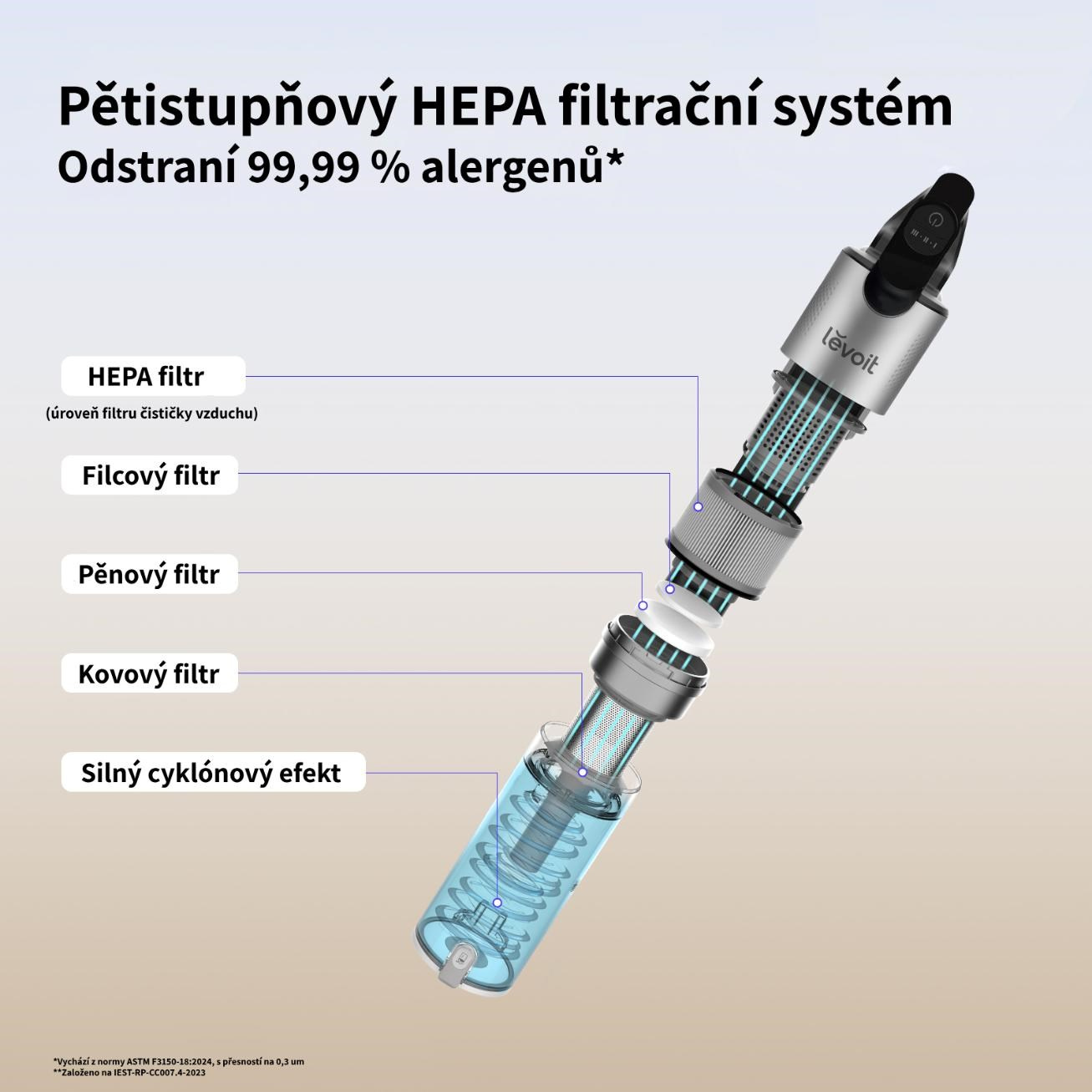 Levoit LVAC-300 6v1 Aku Turbo Cyclone Tyčový vysavač Levoit je navržený, aby maximálně usnadnil úkliVíce