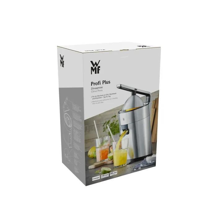 Odšťavňovač WMF Profi Plus, navržený pro maximální extrakci šťávy, vám zajistí zdravý start do dne – to vše v jednoduchém a nenáročném provedení. Jeho univerzální kužel s automatickým otáčením při stisknutí je vhodný pro všechny druhy citrusových plodů a pro lahodnou čerstvou šťávu plnou vitamínů a živin. Výkonný 160W motor odšťavňovače skutečně vytěží i poslední kousek, zatímco ergonomická páka zaručuje snadnou obsluhu. Odšťavňovač Profi Plus, vyrobený z úžasné a zároveň odolné nerezové oceli a s nekapajícím výlevkou, je stylovým a moderním doplňkem každé kuchyně.