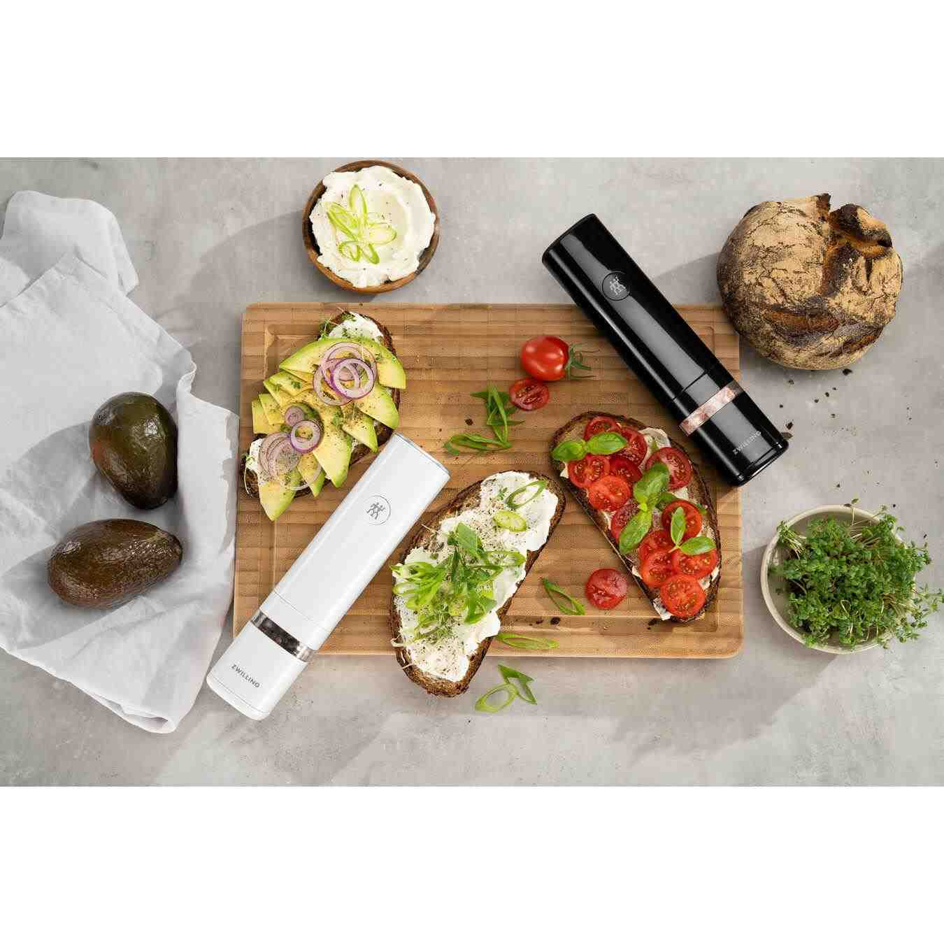 Tento tichý a kompaktní mlýnek na sůl, pepř a koření se může pochlubit výkonným a odolným keramickým mlýnkem, který rychle a efektivně mele stejnou velikost. Elegantně vypadající mlýnek je elegantní a vysoce funkční, je vybaven snadno použitelným otočným voličem pro volbu velikosti mletí od jemného po hrubé a automatickým světlem, které osvětluje plochu, na níž se mele.