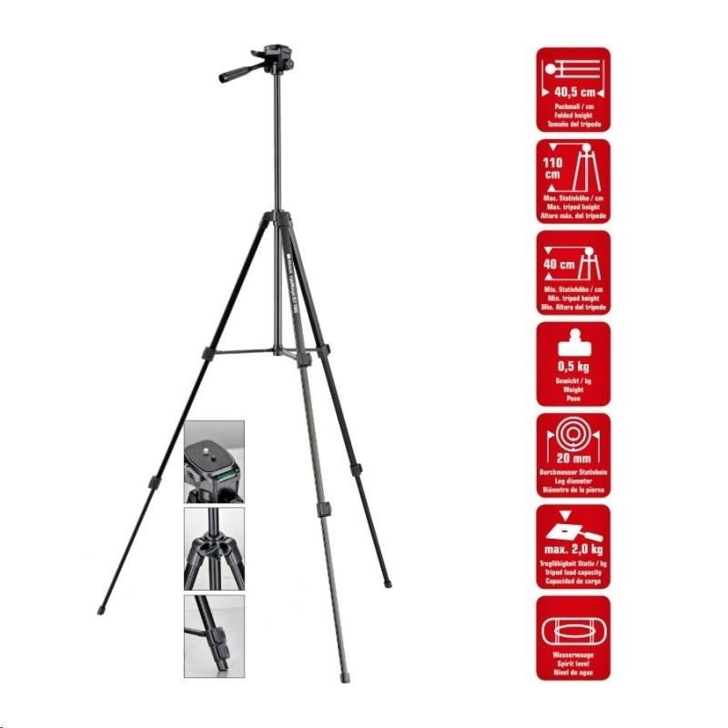 Braun stativ LW BLT 100S (40,5-110 cm, 500 g, 3-směrná hlava, max.2kg, černý)