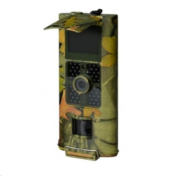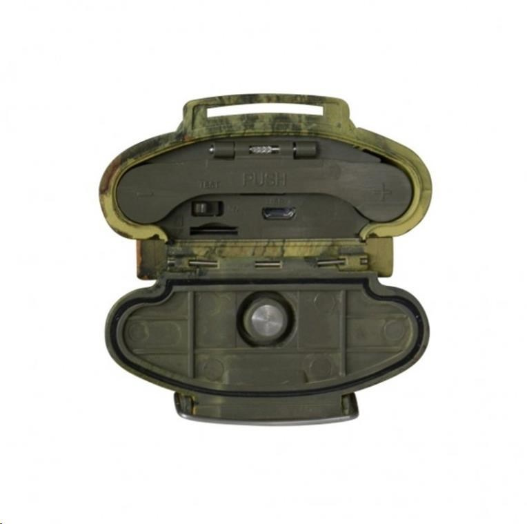 Digitální sledovací fotopast s detekcí pohybu nebo nastavením TimeLapse, záznam 1-9 foto JPEG 16 MP nebo FullHD video AVI 1080p vč. audio, 90°/1,8 objektiv, PIR senzor s úhlem 120° / 20m dosah / 0,5s prodleva, 48 Black IR LED 940nm až do 25m. 5Mpx čip pro barevné denní záběry a černobílé v noci. Outdoor přístroj s vnějším 2" LCD pod krytem a dálkovým ovládáním, voděodolný dle IP54, záznam datumu/ času/ fáze měsíce, maskované provedení na zavěšení v přírodě - velmi tenký moderní design, barva camouflage. Časosběrný režim 30-240min, slot pro karty SDHC do 32 GB, 6x AA baterie nebo 9V DC externí zdroj, laserové světlo pro nastavení směru snímání v noci (TEST režim), rozměry: 172 x 80 x 43,5 mm. V dodávce instalační CD, kabel USB, dálkové ovládání a dva řemínky na uchycení. BlackVision LED 940nm mají nižší dosah než normální IR LED, ale jsou vhodné pro ostrahu proti zlodějům - nejsou vidět ani při přímém pohledu na fotopast při expozici..