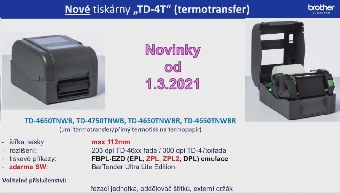 BROTHER tiskárna štítků TD-4650TNWB (tisk štítků, 203 dpi, max šířka štítků 112 mm) USB,LAN,WiFi,Bluetooth,RS-232C