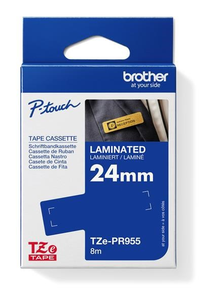 Popis BROTHER TZe-PR955- kazeta TZ šířky 24mm, laminovaná TZe-PR955 PREMIUM SILVER / stříbrná páska / bílé písmo