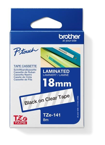 BROTHER TZE141 - kazeta TZ šířky 18mm, laminovaná TZE-141, průsvitná/černé písmo