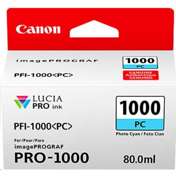 Canon CARTRIDGE PFI-1000PC photo azurová pro ImagePROGRAF PRO-1000 (600 str.)