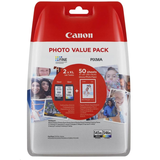 Canon CARTRIDGE PG-545XL/CL-546XL-fotopapír GP 501 multipack pro Pixma MG a Pixma TS 305, 3150, 3151, 3450, 3451, 3452, 2550, 2550s, 2555, 2555s, 3050, 3051, 3052 a 3053 (400 str.)