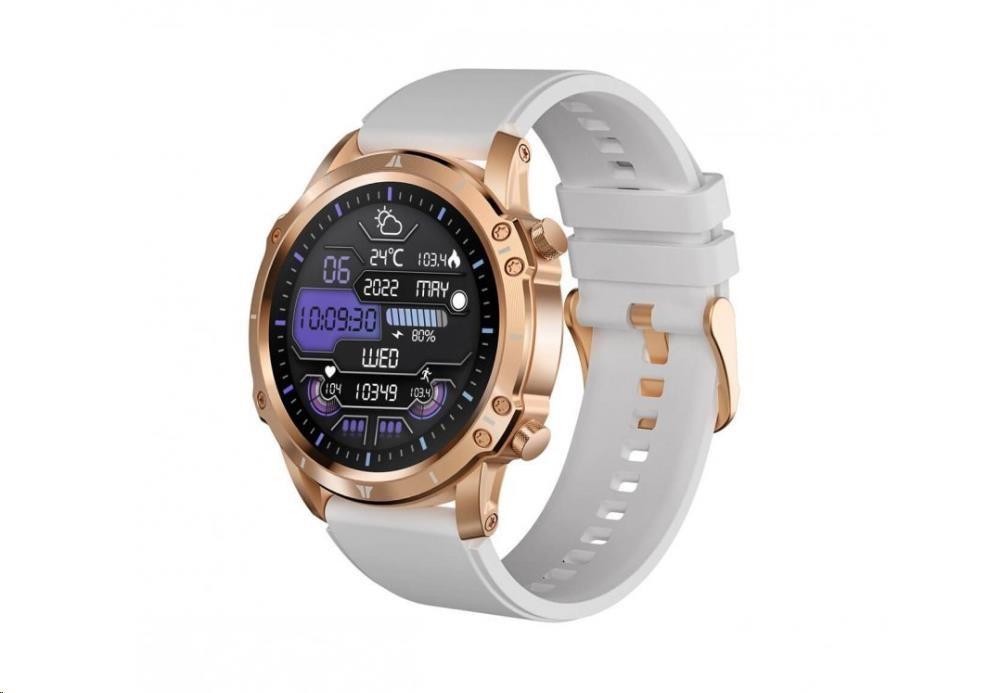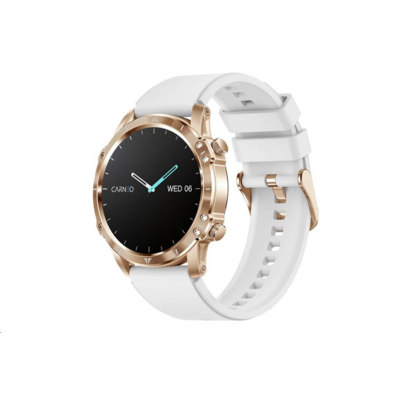 Moderní outdoorové fitness hodinky CARNEO ADVENTURE HR+ druhé generace v zlatorůžové barvě s bílým, na dotek velmi příjemným silikonovým řemínkem a barevným SUPER AMOLED displejem s vysokým jasem a funkcí trvalého zobrazení času monitorují vaši denní aktivitu, úroveň stresu, ale lze je spárovat s mobilním telefonem a upozornit vás na příchozí hovor nebo SMS. Hodinky umožňují telefonovat, aniž byste museli telefon vyndat z tašky, díky vestavěnému mikrofonu a reproduktoru až do vzdálenosti 10 m od telefonu. Jejich bezchybné kovové tělo s nadčasovými outdoorovými křivkami je tak návykové, že je po prvním nošení nebudete chtít sundat ze zápěstí. Extrémně odolné sklo Gorilla glass, ochrání jejich křišťálově čistý displej před poškrábáním.