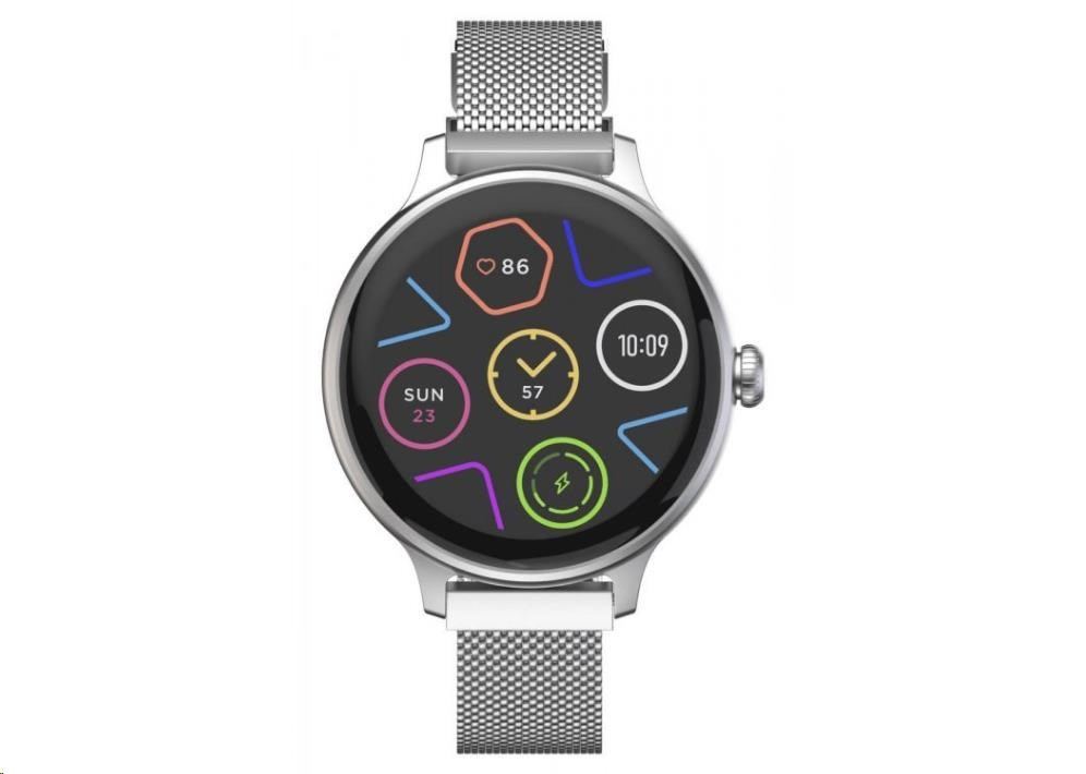 Luxusní fitness hodinky CARNEO HERO mini HR+ s Milánským, kovovým řemínkem s barevným Super HD AMOLED displejem. Monitorují vaši denní aktivitu, výšku stresu a lze je spárovat s mobilním telefonem, díky čemuž Vás upozorní na příchozí hovor či SMS. Jejich dokonalé, minimalistické kovové tělo s jednoduchými křivkami je tak návykové, že je nebudete chtít po prvním nošení sundat z ruky. Hodinky Vám umožňují vyřídit telefonický hovor přes zabudovaný mikrofon a reproduktor, pokud budete v dosahu spárovaného telefonu (vzdálenost až 10 metrů).