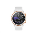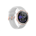 Moderní outdoorové fitness chytré hodinky Carneo Queen HR+ v elegantní bílé barvě se stříbrnou korunkou z nerezové oceli mají kulatý barevný displej SUPER AMOLED chráněný tvrdým minerálním sklíčkem. Umožňují měření srdečního tepu, stresu, BMI, ujeté vzdálenosti, monitorování spálených kalorií či kvality spánku. Obsahují 380mAh baterii s výdrží až 5 dní. Podle certifikace IP67 jsou odolné vůči vodě a prachu. Jsou kompatibilní s operačním systémem iOS a Android. Hodinky mají na dotek příjemný silikonový řemínek v černé barvě, který lze vyměnit za řemínek v jiné barvě či kožený nebo kovový a tím pádem změnit hodinkám sportovní vzhled za manažerský. Vkusný outdoorově-luxusní design se snadno kombinuje k obleku či volnočasovému outfitu. Hodinky i aplikace jsou kompletně v češtině, takže si budete jistě spolu dobře rozumět.