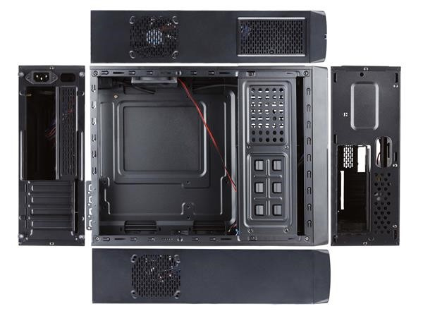 Integrovaný zdroj; Provedení skříně:Mini Tower / micro ATX; Barva skříně:Černá; Počet pozic 5.25":1; Počet pozic 3.5" (HDD):3; Počet pozic 2.5" (SSD):2.Více