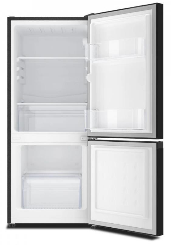 Praktické uložení potravin umožňují 2 nastavitelné police v chladicí části a dva průhledné boxy - jeden v ledničce a druhý v mrazáku. Ve dveřích najdete poličku na nápoje a horní poličku na drobnější potraviny. Dveře je možné nastavit pro levé nebo pravé otevírání.