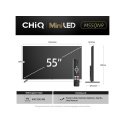CHiQ M55QN9V, 55" (139 cm), metalická bezrámečková Smart MiniLED Google TV 5.0, Ultra HD (4K), DLG 120 Hz, MEMC, lokální stmívání, Dolby Atmos, Dolby Audio, dbx-tv, HDR 10, HLG, Dolby Vision, WiFi 2,4/5G, Bluetooth 5.0, webový prohlížeč, Google Assistant, Chromecast, O2 TV, YouTube, Netflix, Prime Video, paměť 2GB+16GB, 4x HDMI, 2x USB, CI slot, 20 W, energetická třída F.