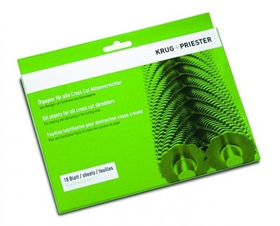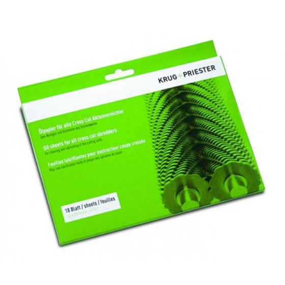 Pro čištění a údržbu skartovacího mechanismu, obzvláště vhodné pro stroje s křížovým řezem. Prodlužuje životnost stroje a udržuje mechanismus v optimálním výkonu. Prostým skartováním dojde k aplikaci speciálního oleje na kovové části skartovacích válců. Olej je uzavřen v papírové kapse, dostane se ven až při skartování. Balení obsahuje 18 listů formátu A5..