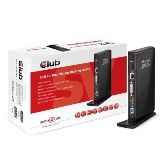 Dokovací stanice SenseVision USB 3.0 Dual Display je dokonalé univerzální zařízení, které vám umožní rozšířit výstupy vašeho notebooku nebo ultrabooku, takže jej můžete používat jako tradiční stolní počítač. Díky čipu DisplayLink ™ DL-3900 je možné k dokovací stanici připojit dva externí monitory s vysokým rozlišením prostřednictvím výstupů HDMI ™ a DVI-I. Má ethernetový port RJ 45 pro spolehlivé a rychlé drátové připojení k síti a nabízí celkem 6 portů USB pro periferie a paměťové zařízení, stejně jako výstup zvuku a mikrofonu. To vše je připojeno k vašemu zařízení pomocí jediného kabelu USB.