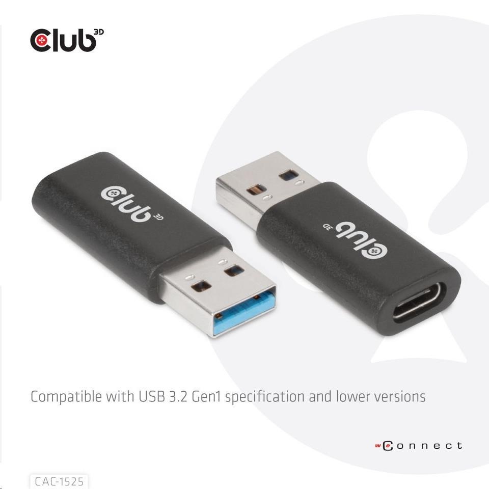 CAC-1525 The Club 3D USB 3.2 Gen1 Type A to USB 3.2 Gen1 Type C Adapter which allows you to connect your host PC with USB-A port to devices (such as USB disk, mobile phone) with Type-C port for downstream data and power. Besides, you can also connect a Type-C to USB hub to your USB-A host PC through this product for downstream data and power transmission.
