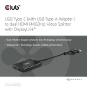 Club 3D CSV-1475 USB-C/A) na duální HDMI (4K60Hz) Video Splitter s DisplayLink® poskytuje nejpokročilejší a nejefektivnější řešení. Podporuje max. jeden 4K60Hz nebo duální 4K60Hz s podporou Extended Desktop.