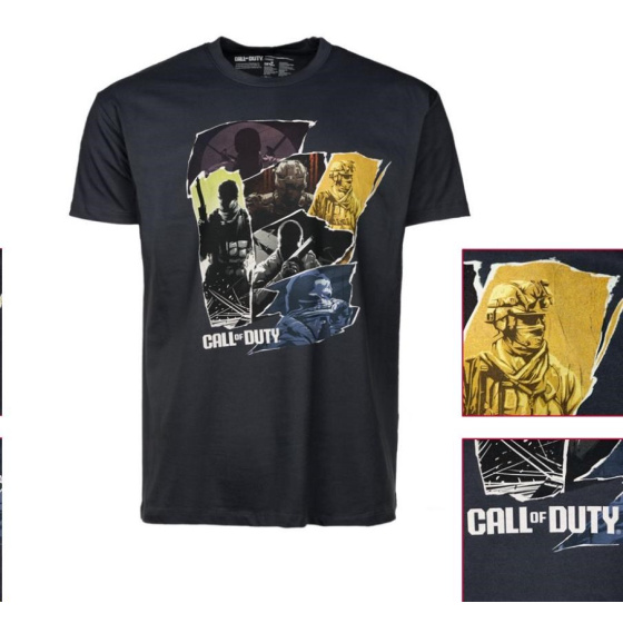 Tričko je ozdobeno vysoce kvalitním digitálním potiskem se stylovou koláží všech hlavních obrázků ze série Call of Duty, jež oslavuje její 20. výročí.