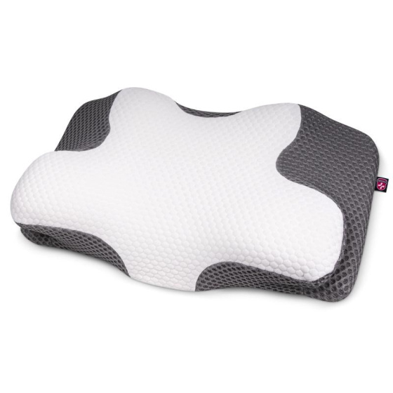 Polštář je vyroben z kvalitní paměťové pěny, čímž udrží správnou pozici těla při spánku a minimalizuje riziko bolesti zad a krční páteře. Jeho použití uvolňuje svaly v oblasti krční páteře což Vám pomůže předcházet problémům s nespavostí, chrápáním nebo svalovému napětí. Jeho anatomický tvar zajišťuje maximální komfort a podporu během spánku.