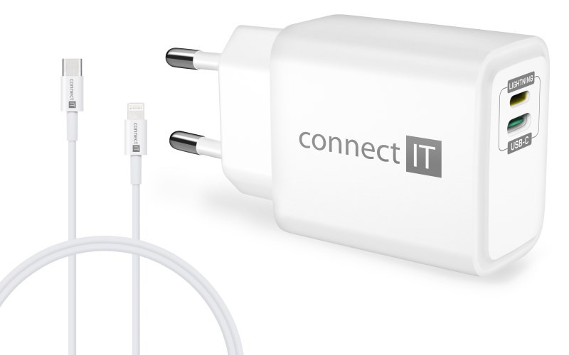 Unikátní cestovní nabíječka CONNECT IT "Duplex" disponuje dvěma porty - Lightning a USB-C. Díky této ojedinělé technologii lze nabíjet zařízení jak s Lightning vstupem, tak USB-C vstupem jedním univerzálním kabelem. Nabíječka je určená pro napájení i nabíjení mobilních telefonů, tabletů, power bank, akčních kamer, elektronických čteček knih, MP3 a MP4 přehrávačů, herních konzolí a mnoha dalších přenosných zařízení doma, v kanceláři i na cestách. Technologie Power Delivery (PD) umožňuje rychlonabíjení o výkonu 20 W. Součástí balení je i velice kvalitní kabel Lightning -> USB-C, který dokáže přenést až 27 W.