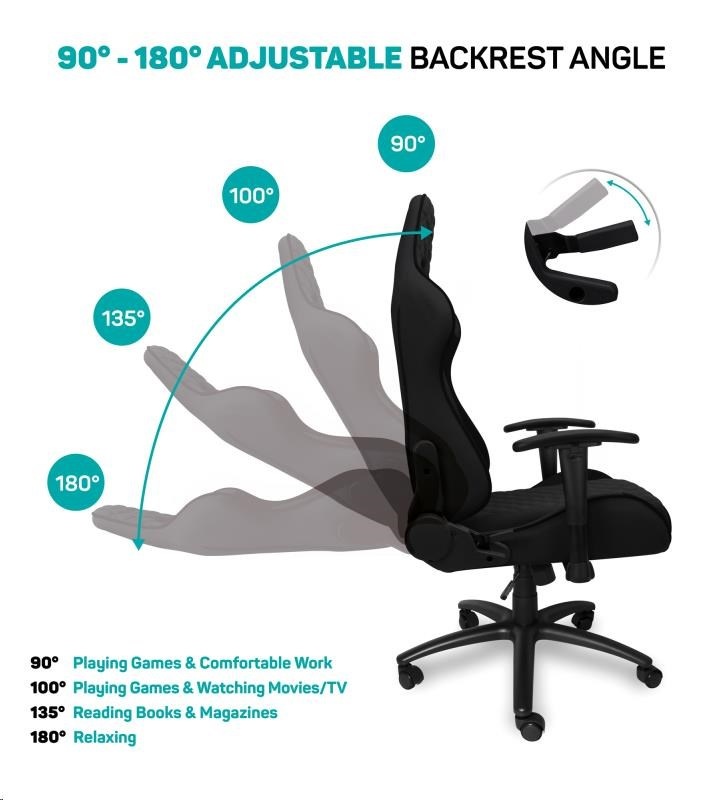 Vyniká luxusním zpracováním, moderním ergonomickým designem a velmi stabilní konstrukcí. Mnohačetná nastavení vyhoví každé postavě. Design byl speciálně navržen pro dlouhodobé sezení a umožňuje i běžnou práci doma i v kanceláři. Ideální pro mnohahodinové hraní bez kompromisů.