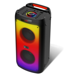 Bezdrátový reproduktor Hyperbass BEAT+ vás překvapí nejen svým zvukem, ale i kvalitním zpracováním. Celý přední panel disponuje barevným LED podsvícením s možností přepínání několika světelných módů. Obsahuje také informační LED displej, možnost ovládání na dálkové ovládání a připojení externího mikrofonu (dálkové ovládání a mikron jsou součástí dodávky).