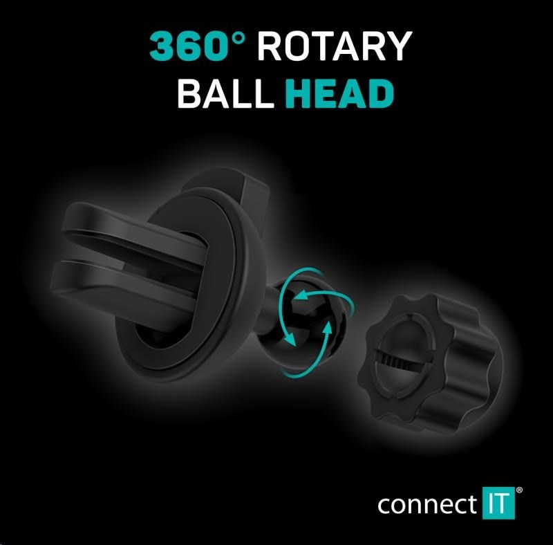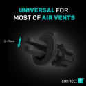 Pozice ve větrací mřížce splňuje bezpečnostní podmínky pro umístění mobilního telefonu v automobilu, kdy telefon nebrání řidiči ve výhledu. Instalace je velmi jednoduchá - postačí pouze zasunout držák do větrací mřížky a je hotovo. Pak už stačí telefon jen vložit do držáku, který jej pomocí čtyřbodového paralelogramu automaticky a bezpečně aretuje.