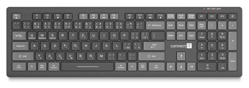 Nízko profilová tichá klávesnice se čtyřmi bezdrátovými profily podporujícími standardy BT 5.0, 3.0 a Wirelless 2,4 GHz je ideální pro domácí použití i pro vysoko zátěžové profesionální použití v kancelářích a firmách.