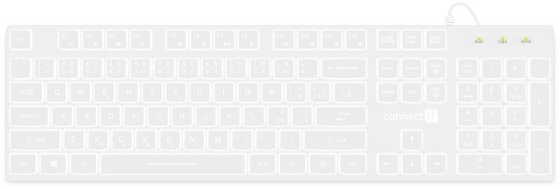 Popis CONNECT IT kancelářská podsvícená klávesnice Chocolate WhiteStar, CZ + SK verze, bílá