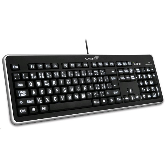 CONNECT IT Klávesnice CI-71 s LED podsvícením a VELKÝM fontem, USB