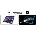 Podložka má měkký, příjemný povrch s nadčasovým cyber potiskem. Při velikosti herní plochy 320 × 245 mm vám nikdy nedojde prostor k pohybu. Velkou výhodou je pogumovaná protiskluzová spodní strana a antistatický povrch, po kterém bez problému bude jezdit každá myš. Materiál byl navržen tak, aby odpuzoval vodu a nečistoty. Podložka má obšité okraje speciální kvalitní svítící nití, která ve tmě jemně svítí.