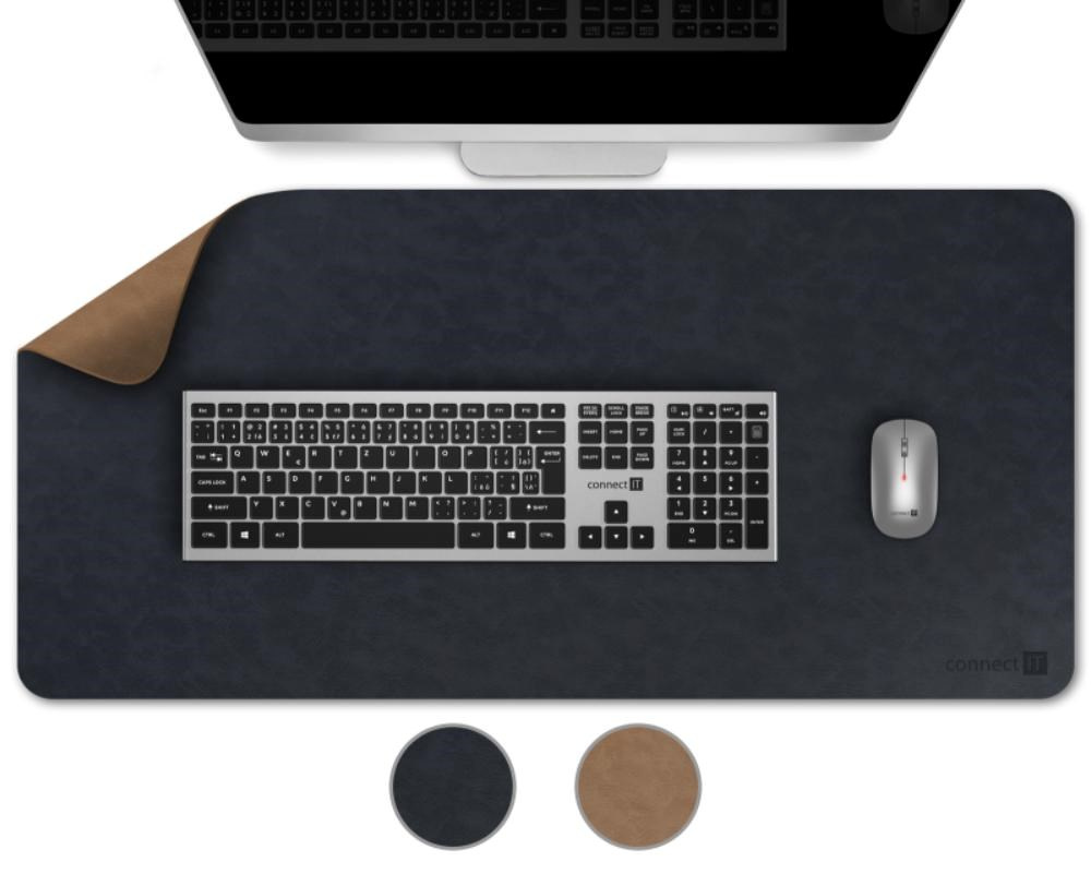 Popis CONNECT IT Podložka pod klávesnici a myš DoubleColor Pad, 900x400, Modrá / Světle hnědá
