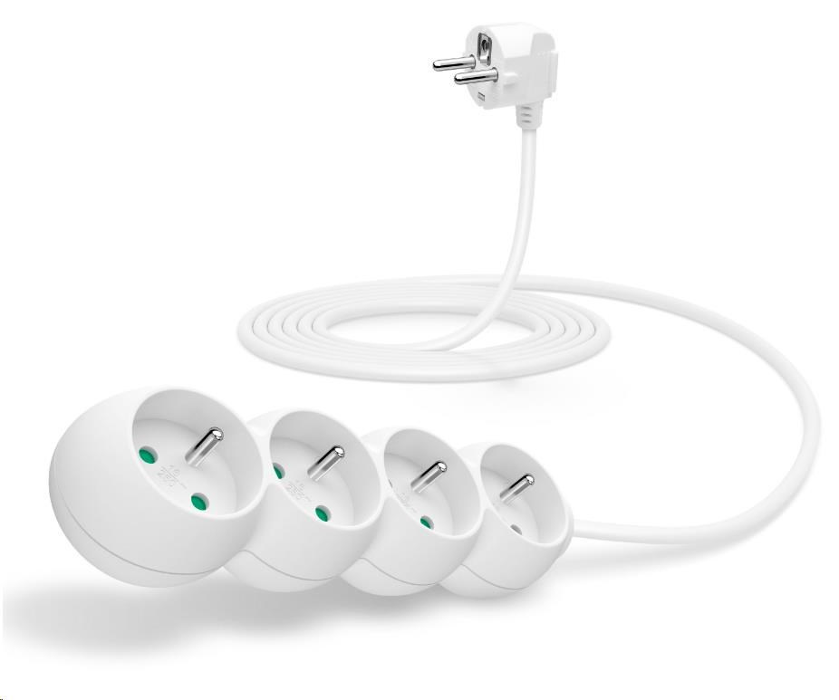 Prodlužovací kabelový přívod na 230V je vybaven dětskou ochranou všech zásuvek – zásuvky jsou přístupné pouze v případě zasunutí obou vidlic najednou, nelze tedy zasunout jednotlivě např. pouze šroubovák nebo pletací jehlici.