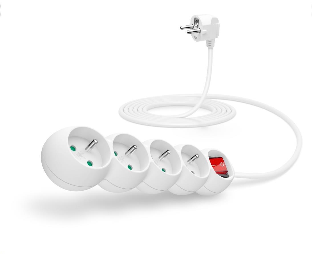 Prodlužovací kabelový přívod na 230V je vybaven hlavním síťovým vypínačem, který při vypnutí zcela odpojí od přívodu elektrické energie všechny zapojené spotřebiče najednou. Extra výbavou je dětská ochrana všech zásuvek – zásuvky jsou přístupné pouze v případě zasunutí obou vidlic najednou, nelze tedy zasunout jednotlivě např. pouze šroubovák nebo pletací jehlici.