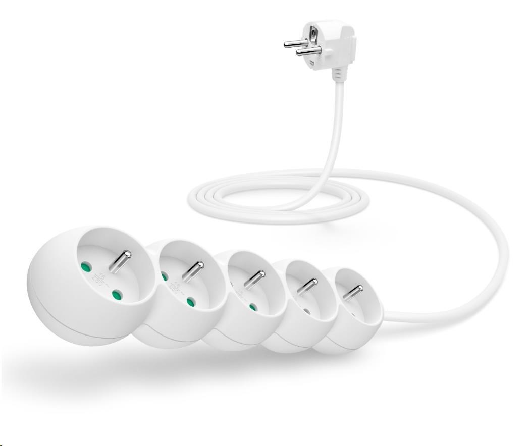 Prodlužovací kabelový přívod na 230V je vybaven dětskou ochranou všech zásuvek – zásuvky jsou přístupné pouze v případě zasunutí obou vidlic najednou, nelze tedy zasunout jednotlivě např. pouze šroubovák nebo pletací jehlici.