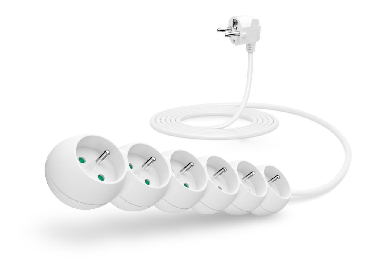 Prodlužovací kabelový přívod na 230V je vybaven dětskou ochranou všech zásuvek – zásuvky jsou přístupné pouze v případě zasunutí obou vidlic najednou, nelze tedy zasunout jednotlivě např. pouze šroubovák nebo pletací jehlici.