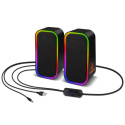 Reproduktory jsou vybaveny RGB Rainbow podsvícením a ovládáním hlasitosti/podsvícení/vstupu na kabelu.