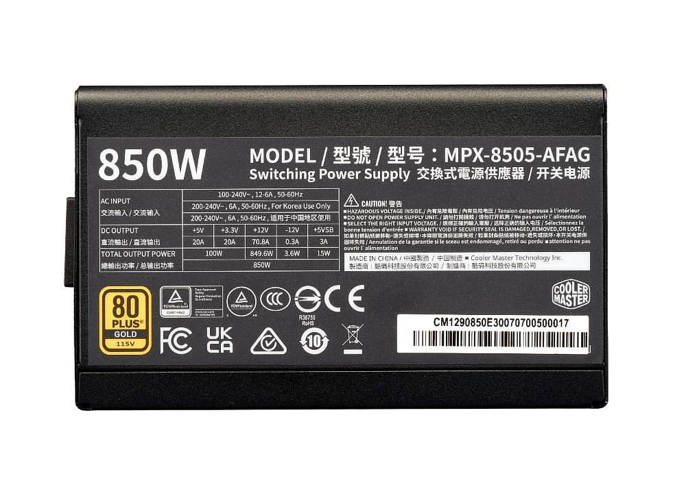 Popis Cooler Master zdroj ELITE Gold 850W FM, 120mm, Plně modulární, 80 Plus Gold, ATX 3.1