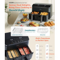 Pokud hledáte způsob, jak připravovat různá jídla současně, aniž byste museli používat více zařízení nebo dělat kompromisy v chuti, pak je pro vás horkovzdušná fritéza Cosori Dual Basket tou správnou volbou. Má dva nezávislé koše, které umožňují připravit dva různé pokrmy najednou, s různým nastavením teploty a času. Cosori Dual Basket využívá technologii 360 ThermoIQ™, která zajišťuje, že vaše jídla budou rovnoměrně uvařená, šťavnatá uvnitř a křupavá zvenčí s použitím malého množství anebo vôbec žádného oleje. Horkovzdušná fritéza Cosori Dual Basket se velmi snadno ovládá a využívá dotykový ovládací panel s intuitivním rozhraním. Díky průhledným okénkům z kvalitního borosilikátového skla na přední stěně fritovacích košů a vestavěnému světlu můžete sledovat své jídlo během přípravy, aniž byste museli fritézu otevírat.