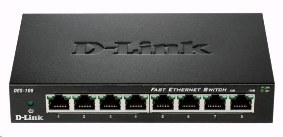 Popis D-Link DES-108 8-port 10/100 Metal Housing Desktop Switch