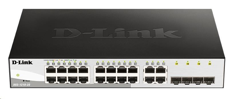 D-Link DGS-1210-20 20-port Gigabit Smart+ Switch, 16x GbE, 4x RJ45/SFP, fanless